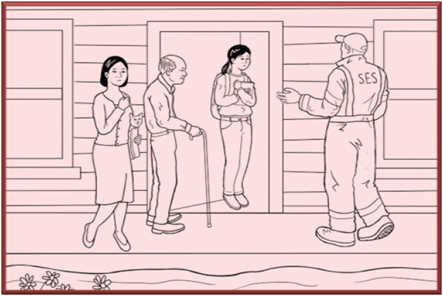 The SES man says, “Come quickly. It’s dangerous. Leave now. Hurry.”